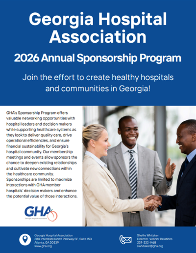 The Georgia Hospital Association Sponsorship Program aims to foster relationships between your company and our membership. Sponsors play a vital role in our association and are highly appreciated.